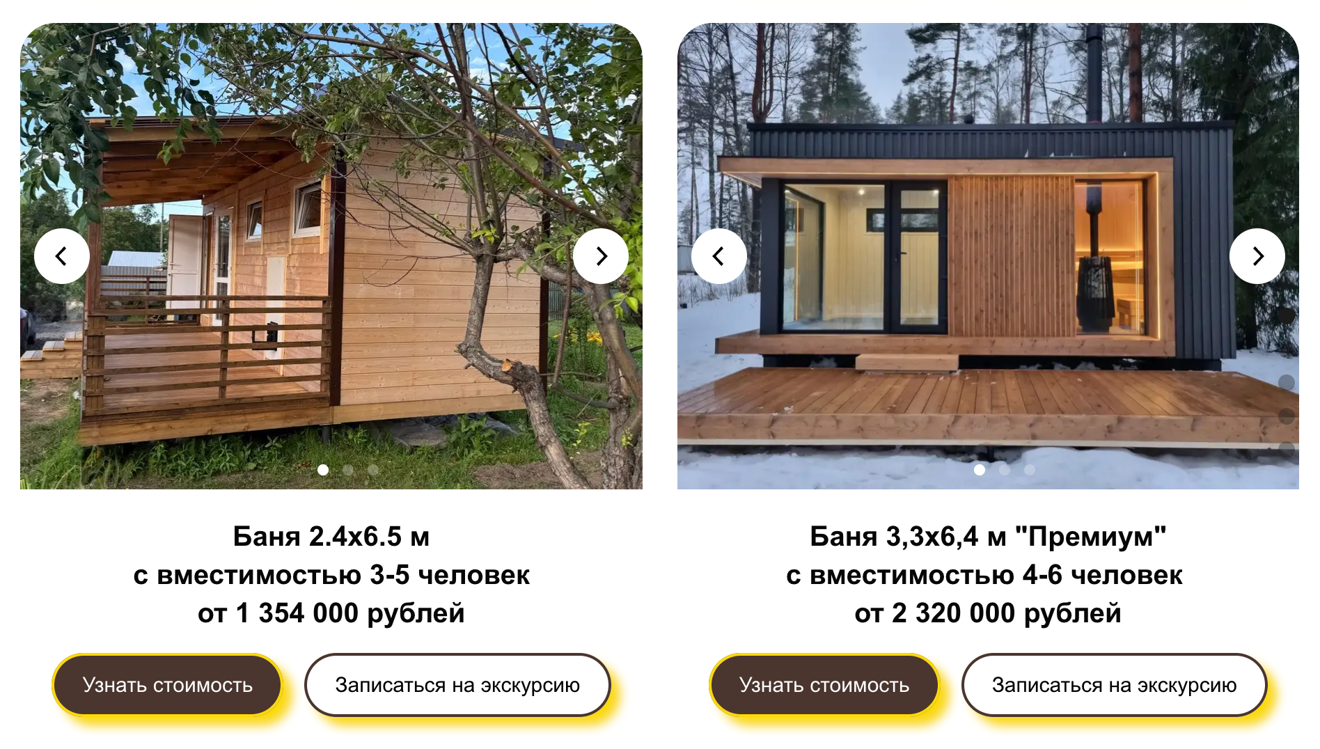 Указали в каталоги цены на бани, так как наша задача была изначально не просто приводить большое количество заявок, а продажи