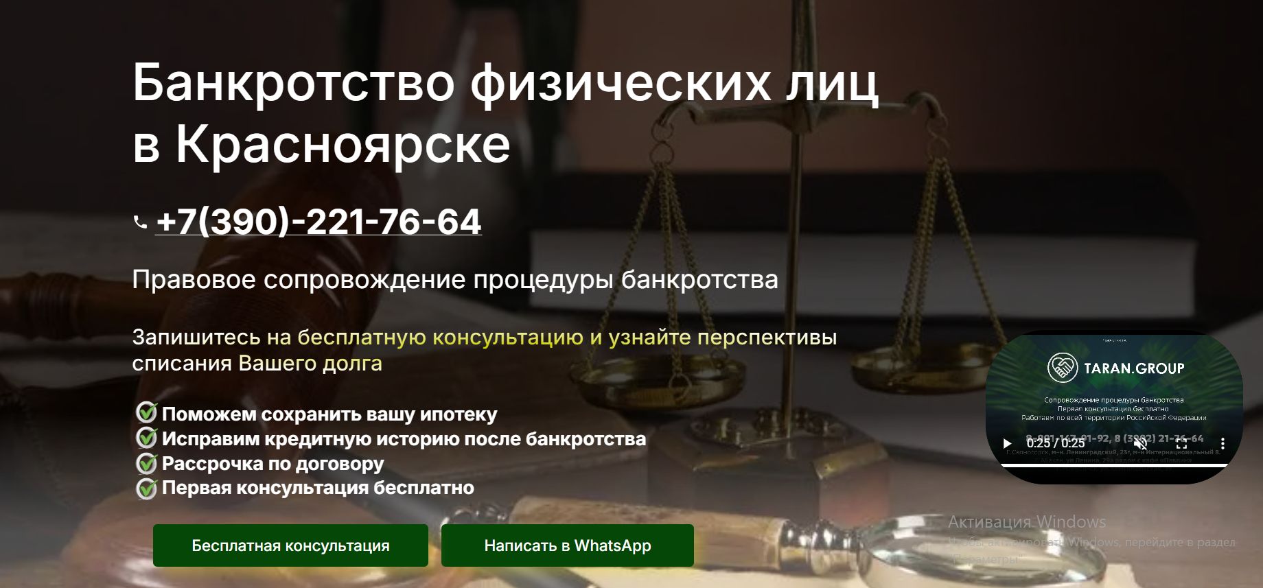 для юридической компании на Банкротство физических лиц в Красноярске.