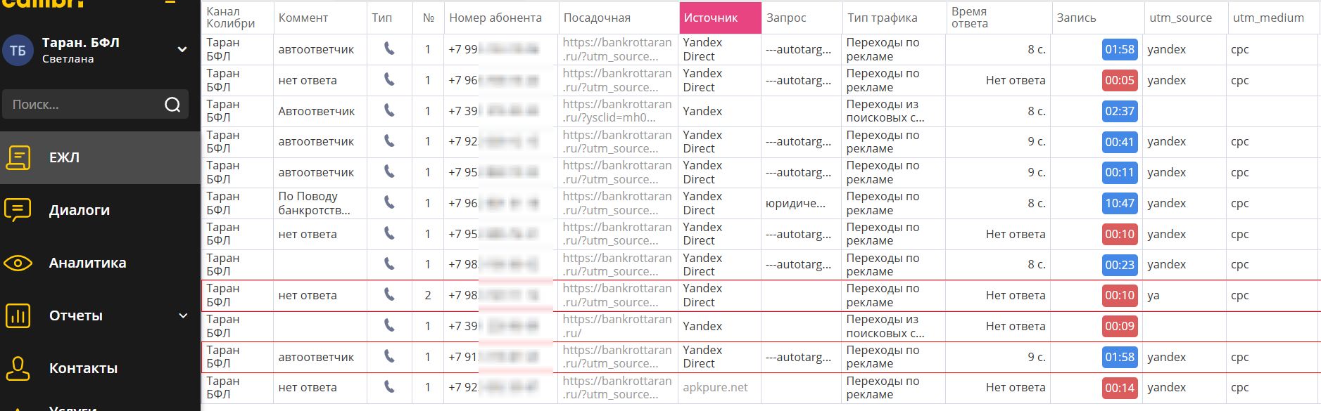✓ Подключен коллтрекинг Callibri