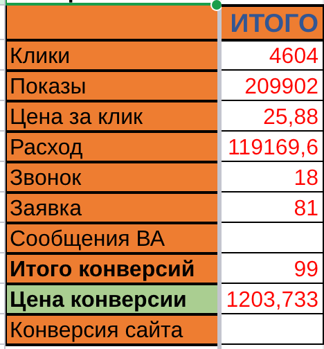 Здесь показаны самые важные цифры. И мы дополнительно по каждой форме замеряем конверсию для того чтобы усилить эффективность нашего сайта.